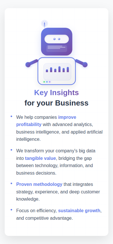- We transform your company's big data into tangible value, bridging the gap between technology, information, and business decisions.